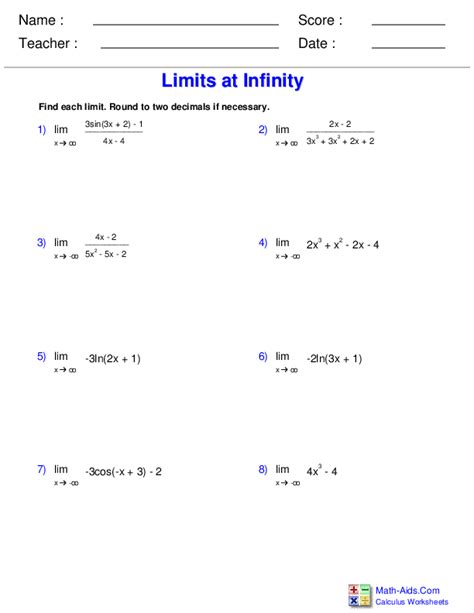 Web png, 71.67 kb. Web calculus 1 worksheet #5 limits involving approaching infinity: The student will be given a function and will be asked to find its limit at.
